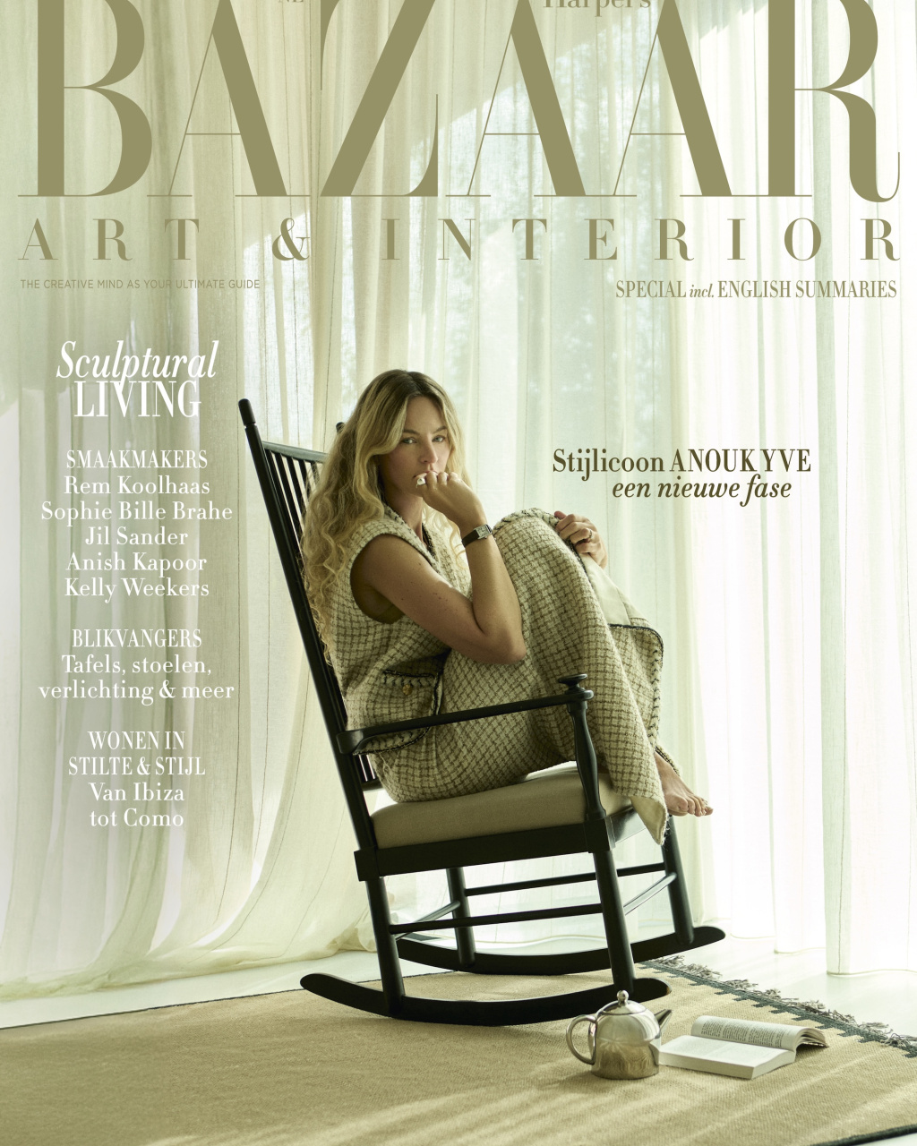 Speciaal voor Bazaar opent stijlicoon Anouk Bos – beter bekend als Anouk Yve – de deuren van haar huis in Groningen, waar ze midden in de natuur haar tijdloze droominterieur creëerde. In een openhartig gesprek vertelt ze over een nieuwe fase in haar leven. Daarnaast biedt deze Bazaar Art & Interior special volop inspiratie voor een warm winterhuis vol sculpturale vormen, bijzondere kunst en design. Ontdek de mooiste stoelen, lampen en tafels van nu, geïnspireerd op internationale catwalks, en neem een kijkje in de creatieve werelden van Tessa de Rijk, Rem Koolhaas, Jil Sander en Kelly Weekers.