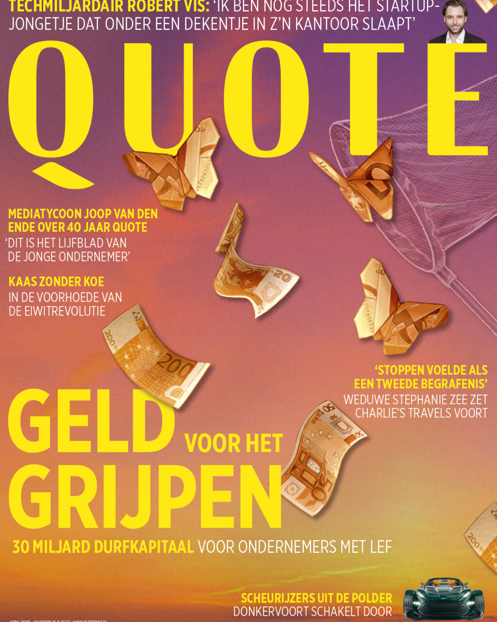 Dat en nog veel meer in de nieuwste editie van Quote. Want wij gingen ook op bezoek bij de Nederlandse supercarbouwer Donkervoort, liepen een dagje mee in de voorhoede van de eiwitrevolutie, vroegen weduwe Stephanie Zee hoe het is om het bedrijf van haar man Charles Witlox, Charlie’s Travels, voort te zetten en gingen uitgebreid op de thee bij mediatycoon Joop van den Ende om samen terug te blikken op 40 jaar Quote.