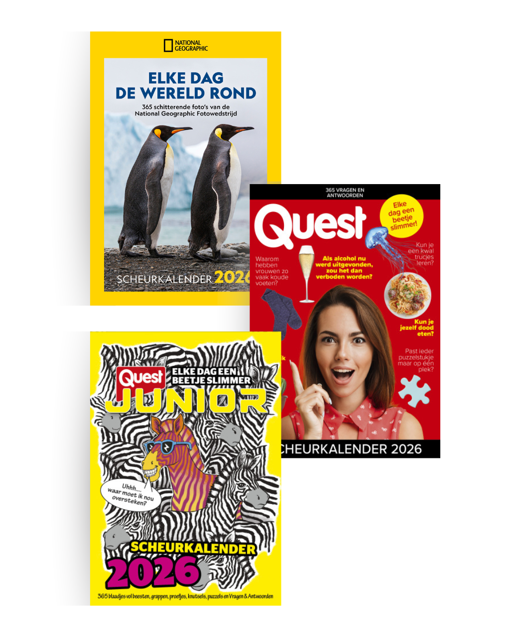Op zoek naar een geweldig cadeau voor de feestdagen? Scheurkalenders bieden een unieke optie om elke dag iets nieuws te ontdekken. Blaadje voor blaadje af te scheuren en elke dag een verrassing te onthullen. U kunt kiezen uit de Quest, Quest Junior en National Geographic scheurkalenders.